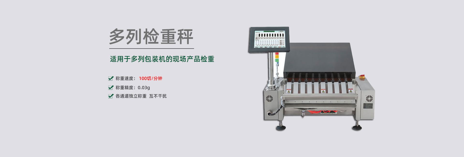 擁有各種剔除方案的專(zhuān)利,包括多列稱(chēng)重結(jié)構(gòu)的剔除裝置,可杜絕不合格品誤通過(guò),準(zhǔn)確剔除各種高速、超薄、片狀、易碎,軟包、空包等物品,包括多列高速產(chǎn)品。